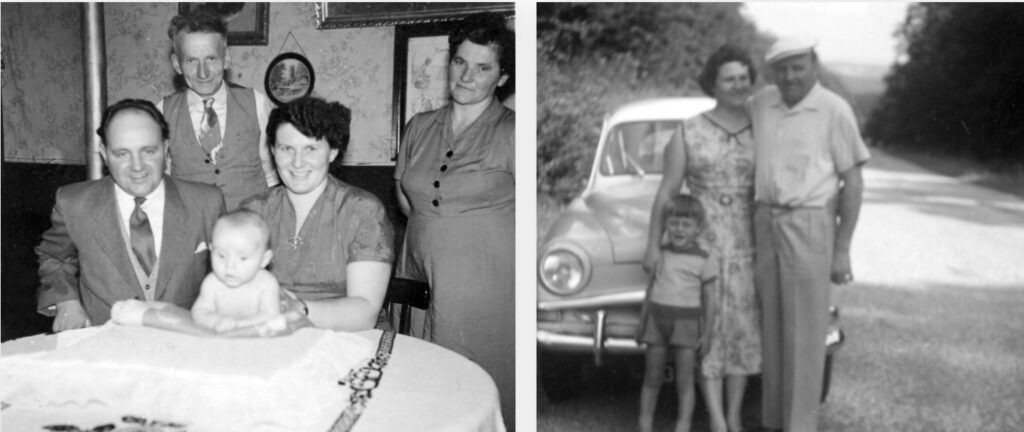 Left: Pierre with wife Odile, son François and Odile`s parents Jean-Pierre and Nathalie Schreiner. RIght: Pierre and family, weekend outing in 1959