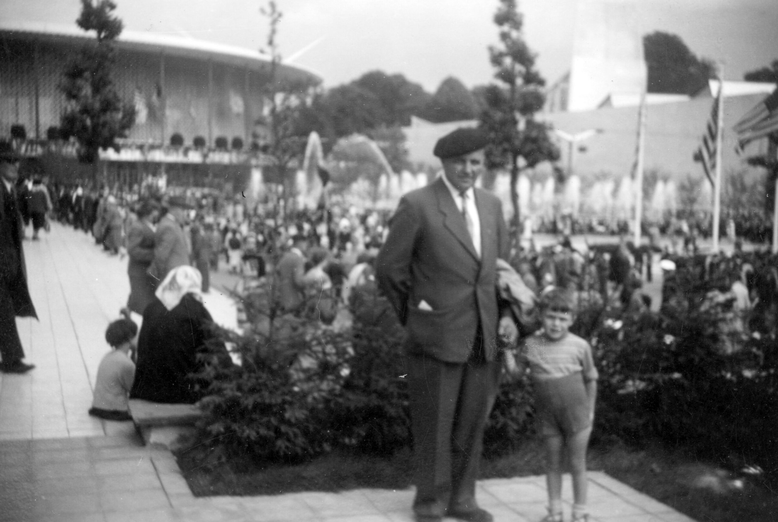 Pierre visits the World Expo in Brussels in 1958 with his son François.